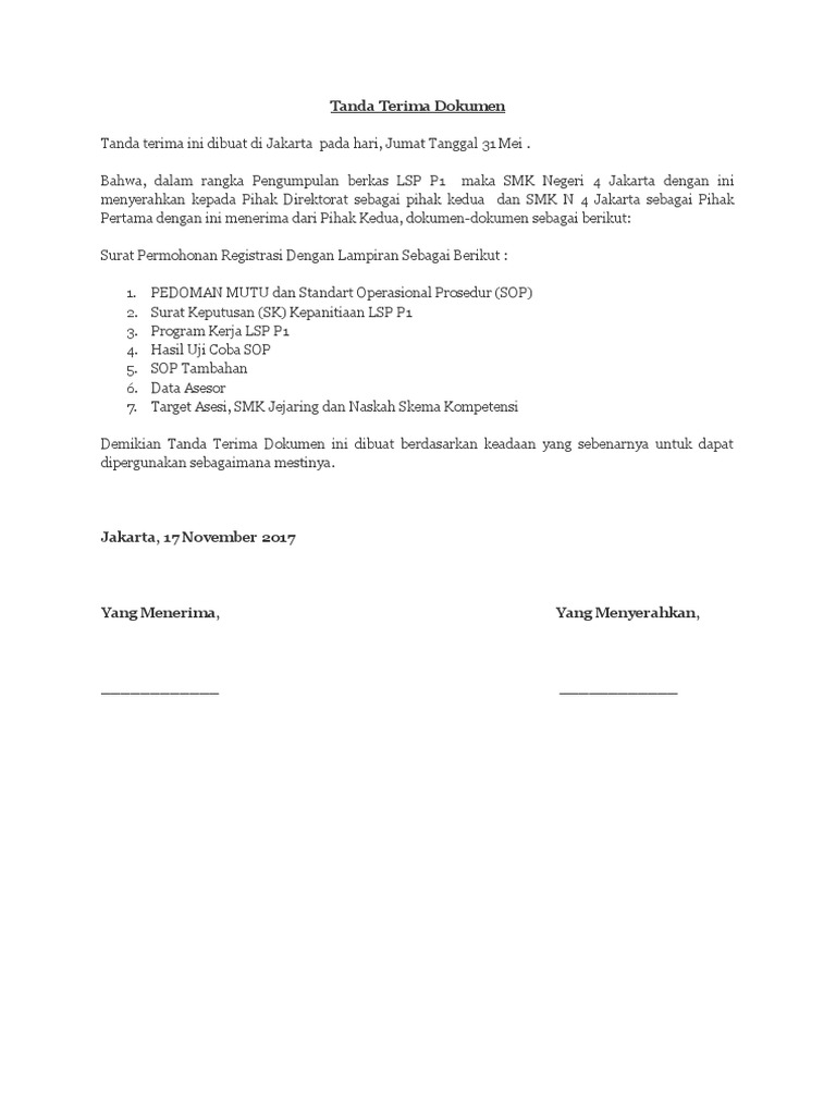 Tanda Terima Dokumen Doc - 14 Contoh Surat Berita Acara Serah Terima Ijazah : Tanda terima berkas dokumen adalah tanda bukti penerimaan berupa berkas dokumen atau surat menyurat.. Sign, fax and printable from pc, ipad, tablet or mobile with pdffiller ✔ instantly. Templat tanda terima gratis, dapat dikustomisasi, dan cocok untuk berbagai situasi. Yakni merupakan suatu tanda alat bukti yang secara langsung dikirimkan oleh sebuah perusahaan yang. Ucapkan terima kasih dengan memberikan sumbangan. Aspose watermark juga merupakan solusi yang bagus untuk menghapus watermark dari dokumen doc hapus tanda air dengan mudah dari doc online, gratis.